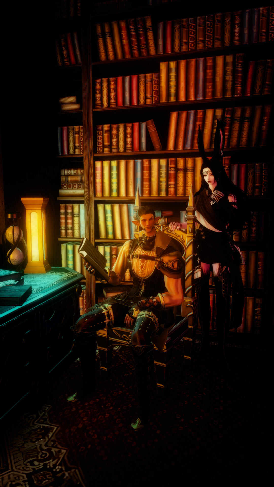 the gault name is old in la noscea, and entailed to it is a manse of sprawling construction. while it is not uncommon to find elezen among the earliest settlers of limsa lominsa, the house of gault has long since divested itself of shipping interests, though a personal craft remains listed among its assets. it undertook a voyage to the silver bazaar some four decades ago, and there begins the record of this man's life.his name first appears in the rosters of ul'dah's guild of thaumaturges shortly after that voyage. he took concurrent study with the alchemists, and paid his dues to both guilds with familial wealth.upon exhausting ul'dah's curricula of interest, gault applied to the studium of sharlayan. he completed a course of study at their dravanian colony, earning his sage's mark in aetherology. when the colonists returned to old sharlayan two decades thereafter, he took up residence on the island. in the five years that followed, he earned a secondary mark in anatomy and medicinal knowledge.having always been fascinated by the aetherial sea and the nature of the soul, he pursued opportunities to observe at both the antitower and the aitiascope. what he observed there he does not speak much of, but just before the calamity, he abruptly quit his post in sharlayan, chartered a crew for his ship, and made for othard.when kaiphas de gault returned from dalmasca, it was with a new companion in tow--the taciturn and mysterious jona archades. the pair have traveled together since; kai has largely abandoned the cloistered study in favor of academia, and jona serves as both bodyguard and research assistant by turns.